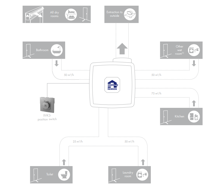 Renson Cube подходит для индивидуальной системы вентиляции как жилых домов, так и квартир.