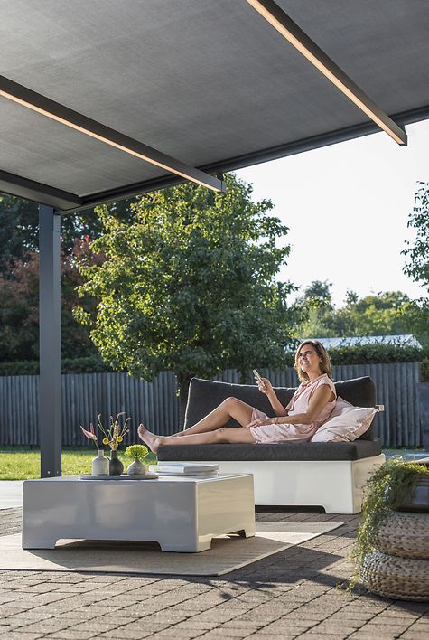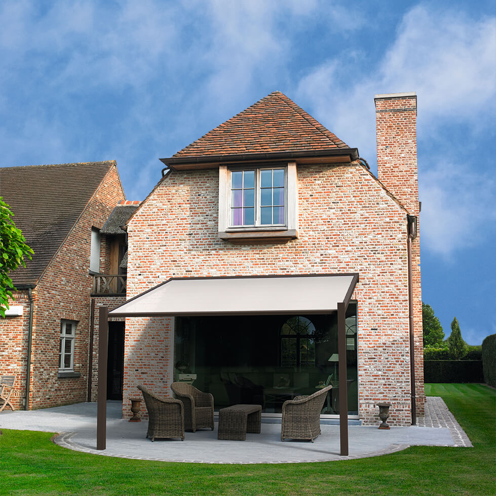 Терраса Renson Lapure состоит из ветрозащитной, водонепроницаемой, солнцезащитной крыши, которая опирается на элегантные дискретные алюминиевые колонны без разрушающего бокового соединения. Он прикреплен к существующему фасаду. Когда крыша закрыта, Пергола Renson Lapure обеспечивает защиту от солнца, ветра и дождя. Когда крыша открыта, вы можете наслаждаться солнцем, так как изящная конструкция не мешает визуально. Для Lapure есть два типа колонн: «концевые колонны» с отводом воды (через боковые каналы и колонны). Также возможно выбрать "смешанные колонны" (со свесом крыши и отводом воды через желоба, даже в полуоткрытом состоянии). Последний имеет свес крыши, который выступает за колонны, чтобы обеспечить оптимальное количество тени. Это позволяет наслаждаться достаточным количеством тени, даже когда солнце низко.
