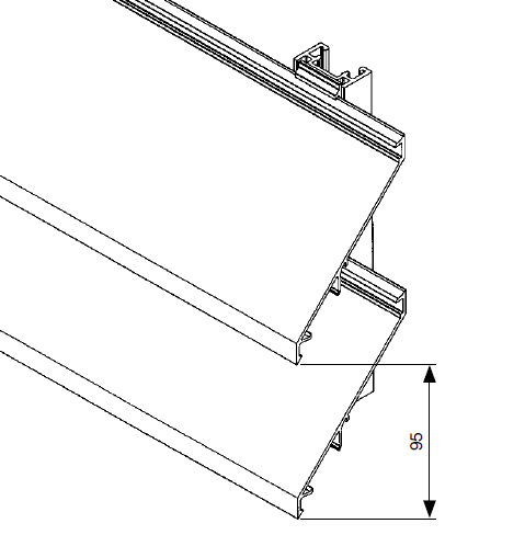 Экстрамощный профиль из экструдированного алюминия с сильным свободным воздушным потоком и с шагом 95 мм.