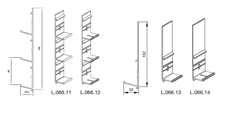 • L.066.21 : держатель ламели: тип L.066.11 (ширина: 28 мм) • Двойной держатель ламели для термического расширения: L.066.12 (ширина: 34 мм) (соединительная деталь для двух ламелей)
