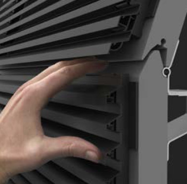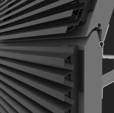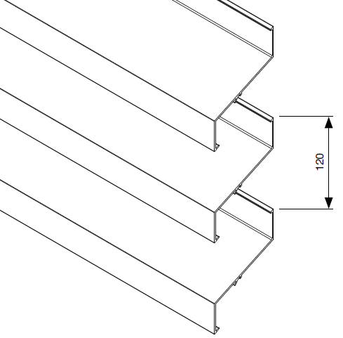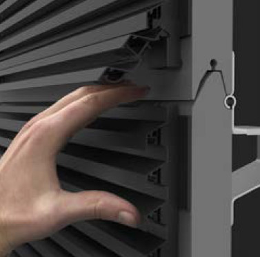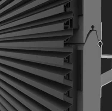 Экструдированный алюминиевый профиль для больших пролетов с шагом 120 мм с оптимальным воздушным потоком. Увеличенная скорость установки благодаря небольшому количеству зажимов и ламелей.
