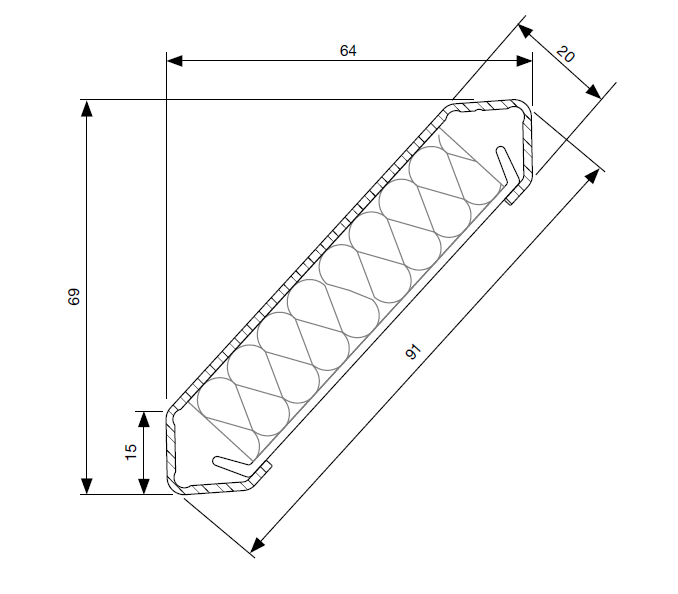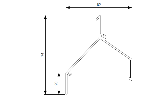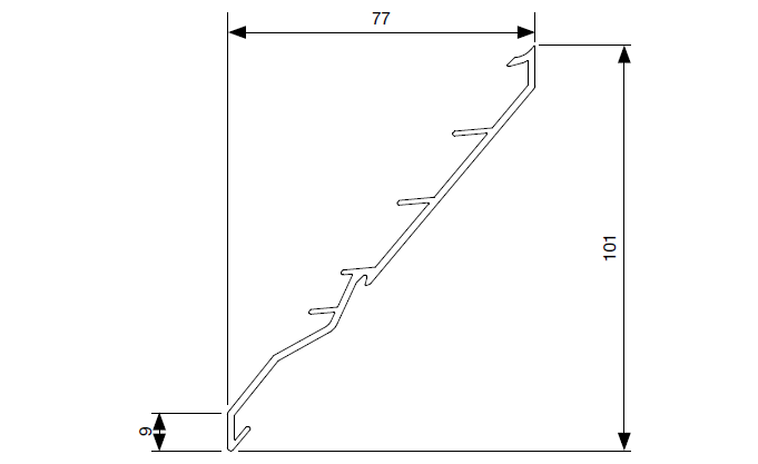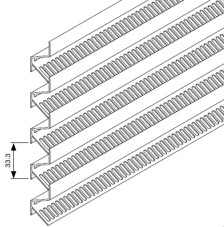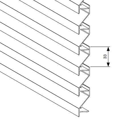 Экструдированный алюминиевый профиль для использования в легких условиях эксплуатации с шагом 33.3 мм. Обычно применяется для небольших участков поверхности.