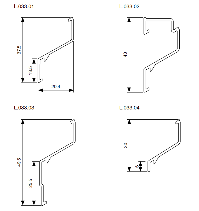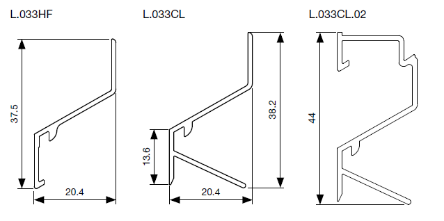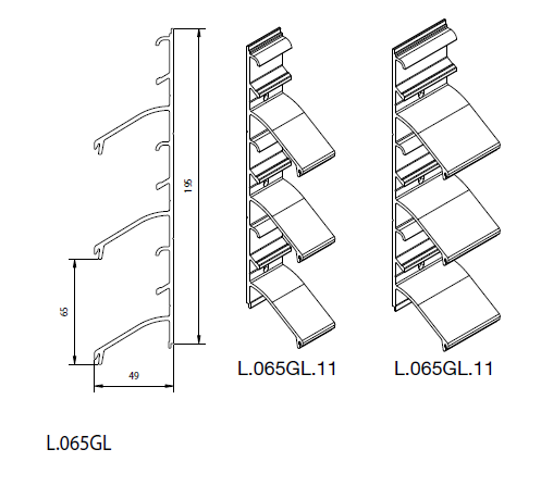 • Одиночный держатель ламели: L.033.11 (ширина: 30 мм) • Двойной держатель ламели для термического расширения: L.033.12 (ширина: 34 мм) (соединительная деталь для двух ламелей) • Держатели ламелей одинаковые для всех типов ламелей L.033. Только они устанавливаюся вверх ногами для ламели типа L.033V.