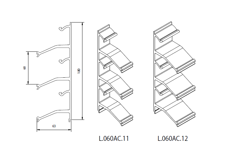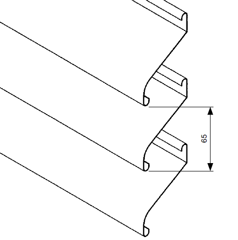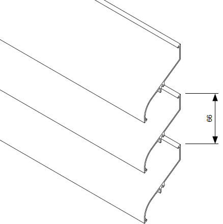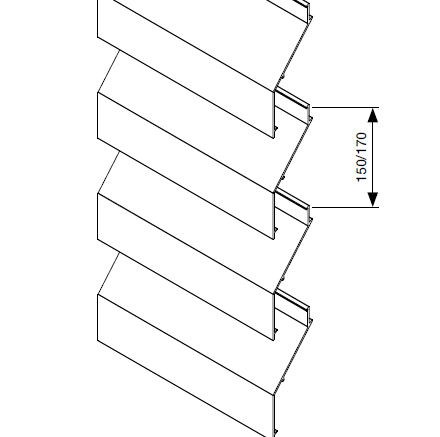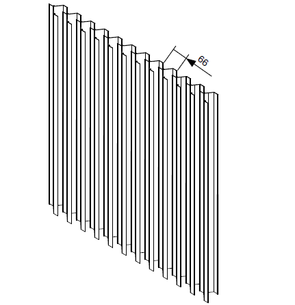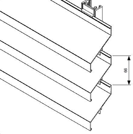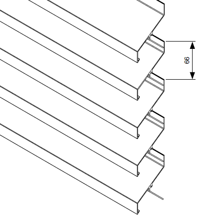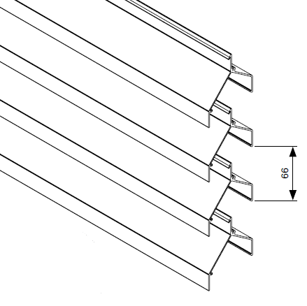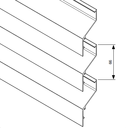 Экструдированный алюминиевый профиль со стандартным шагом 66 мм. Переменный шаг 66 - 132 мм возможен с держателями ламелей типов L.066.13 и L.066.14 (см. чертеж ниже). Может использоваться в качестве эстетичной облицовки фасадов, солнцезащитного или визульного экрана.