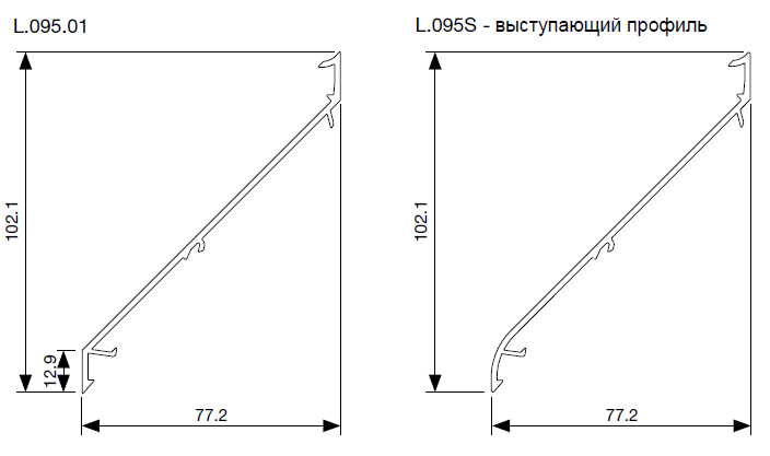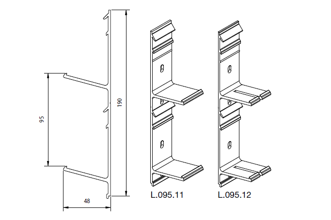 • Одиночный держатель ламели: тип L.095.11 (ширина: 28 мм) • Двойной держатель ламели для термического расширения: L.095.12 (ширина: 34 мм) (соединительная деталь для двух ламелей)