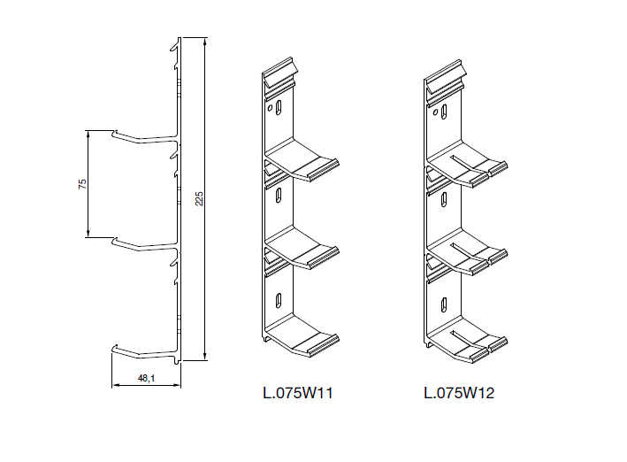 • Одиночный держатель ламели: тип L.075W.11 • Двойной держатель ламели для термического расширения: тип тип L.075W.12