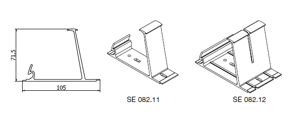 • Одиночный держатель ламели: тип SE.082.11 (ширина: 28 мм) • Двойной держатель ламели для термического расширения: SE.082.12 (ширина: 45 мм) (соединительная деталь для двух ламелей)