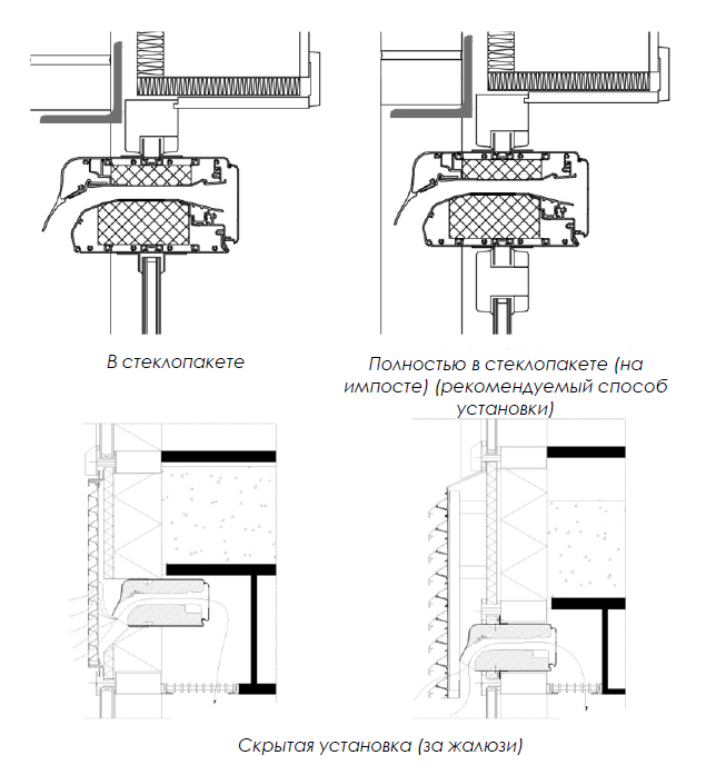 Sonovent предпочтительно помещать на импосте. Добавляя Г-образные профили к верхней и нижней стороне, Sonovent также можно разместить на стекле.