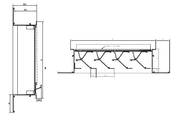 • Скобы, код 1428 входят в комплект • Для вентиляционных панелей шириной более 2395 мм требуется армирующий импост с учетом требований дизайна для соответствия амплитуде и ветровой нагрузке